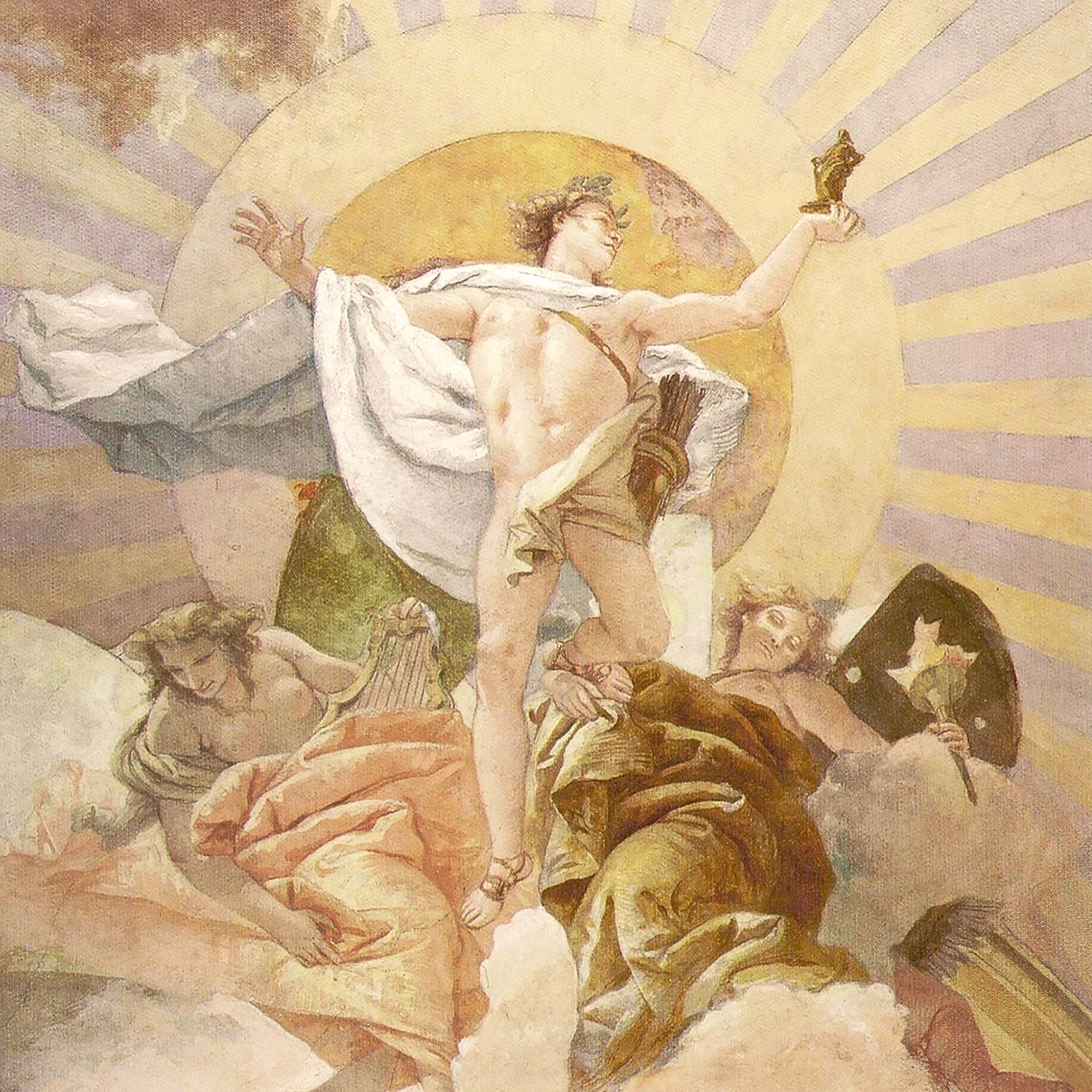 APOLLON : dieu grec des arts, de la musique, de la poésie et de la lumière (aussi brillante et puissante que le soleil). Il est également un dieu de la purification, des rituels sacrificiels et de la divination. Ses visions sont rendues par la Pythie (l’oracle de son temple) à Delphes. Il est connu tout autant pour sa beauté grandiose que pour son caractère redoutable et son côté sombre. Apollon a été porteur de peste et de châtiment divin, il a également mutilé et tué sans pitié. Mais il sait être un protecteur accompli et est rattaché à la médecine et à la guérison. Ses flèches, bien qu’elles puissent causer la destruction, peuvent aussi repousser le mal loin de ceux qui demandent son aide. Il acquit une lyre en écailles de tortue (qui devint son instrument musical), offerte par son demi-frère le dieu Hermès.