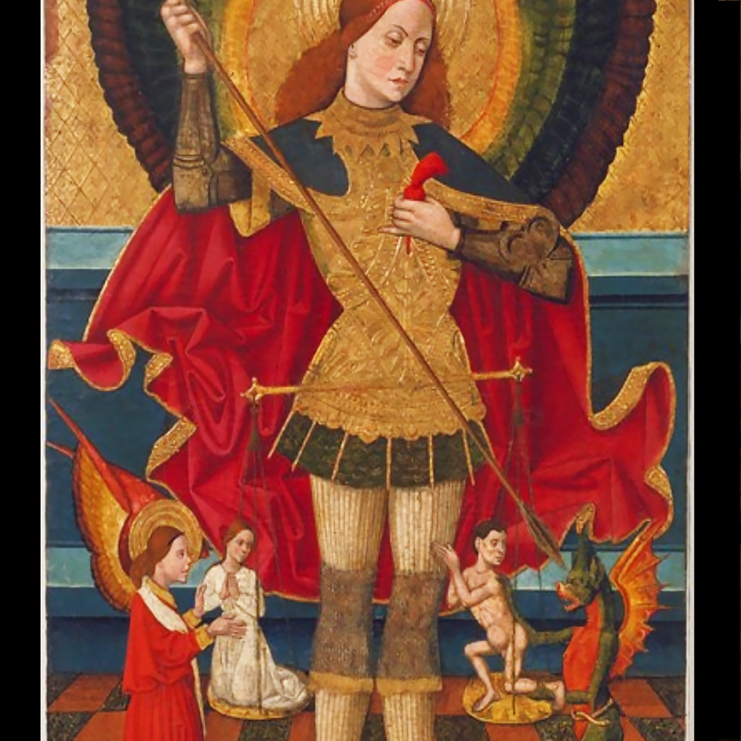 L’ARCHANGE MICHAËL : l’archange Michaël est une entité majeure dans les religions monothéistes. Chef de la milice céleste, il est souvent représenté lors de l’apocalypse en chevalier qui terrasse le Diable et lors du jugement dernier avec la balance de la pesée des âmes. Il les guide d’ailleurs vers l’Enfer ou le Paradis.