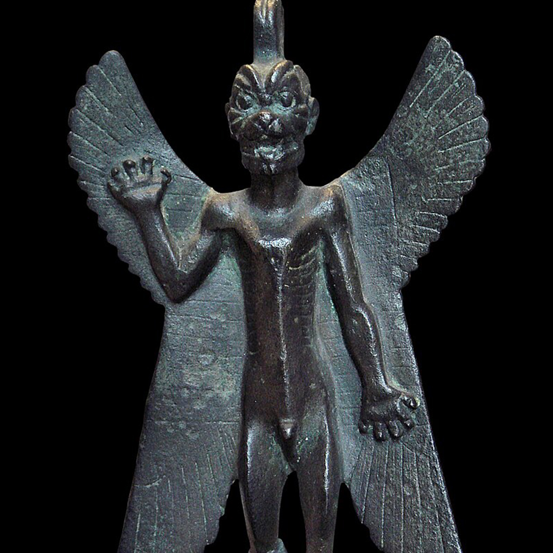 PAZUZU : au Moyen-Orient, il y a près de trois mille ans, pour éviter de tomber malade ou pour guérir d’une maladie, les Mésopotamiens priaient et appelaient Pazuzu, le roi des démons des vents. Il a le pouvoir de diriger les vents mauvais, et de propager les épidémies. Mais s’il peut avoir un rôle malfaisant, il est également connu par son aspect protecteur, servant à combattre diverses maladies, en particulier celles touchant les femmes enceintes et les enfants.